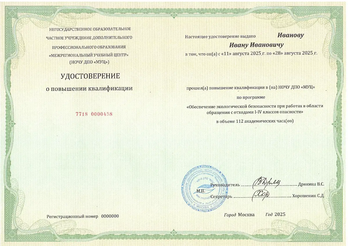Повышение квалификации по обращению с отходами в «МУЦ» — это оптимальное решение для специалистов, которые хотят работать в соответствии с современными требованиями законодательства и обеспечить экологическую безопасность на своем предприятии.