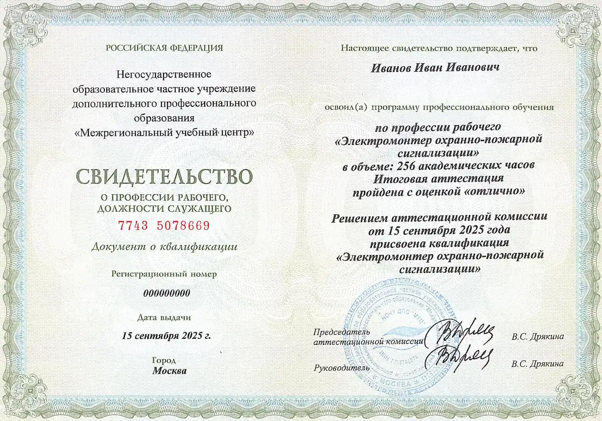 «Межрегиональный учебный центр» приглашает пройти обучение на электромонтера охранно-пожарной сигнализации в формате дистанционного курса. Программа разработана в соответствии с современными требованиями и полностью соответствует профстандарту. Обучение позволит слушателям получить востребованную рабочую профессию и официальное подтверждение квалификации, открывающее возможности трудоустройства в организациях, занимающихся монтажом и обслуживанием систем безопасности.