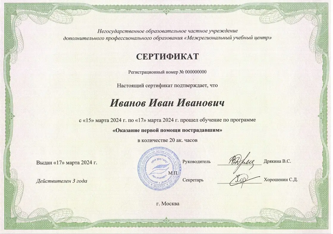 Таким образом, обучение первой помощи пострадавшим полностью соответствует действующим нормативным документам и обеспечивает слушателям легитимные знания, востребованные в профессиональной деятельности.