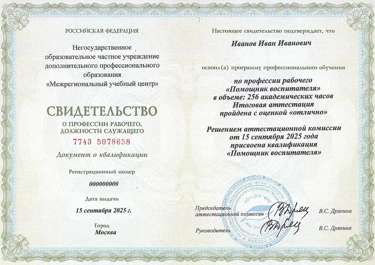«Межрегиональный учебный центр» приглашает пройти курсы помощника воспитателя в удобном дистанционном формате. Программа ориентирована на тех, кто хочет получить востребованную профессию в сфере дошкольного образования, соответствующую требованиям профстандарта младшего воспитателя. Мы предлагаем дистанционные курсы — это возможность освоить все необходимые знания и навыки без отрыва от текущей работы или семейных обязанностей.