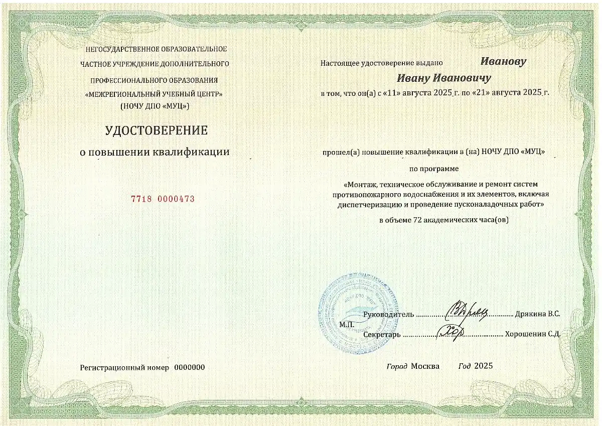 В результате повышение квалификации по противопожарному водоснабжению позволяет специалистам уверенно выполнять весь спектр работ, от проектирования и установки до диспетчеризации и регулярного обслуживания систем.