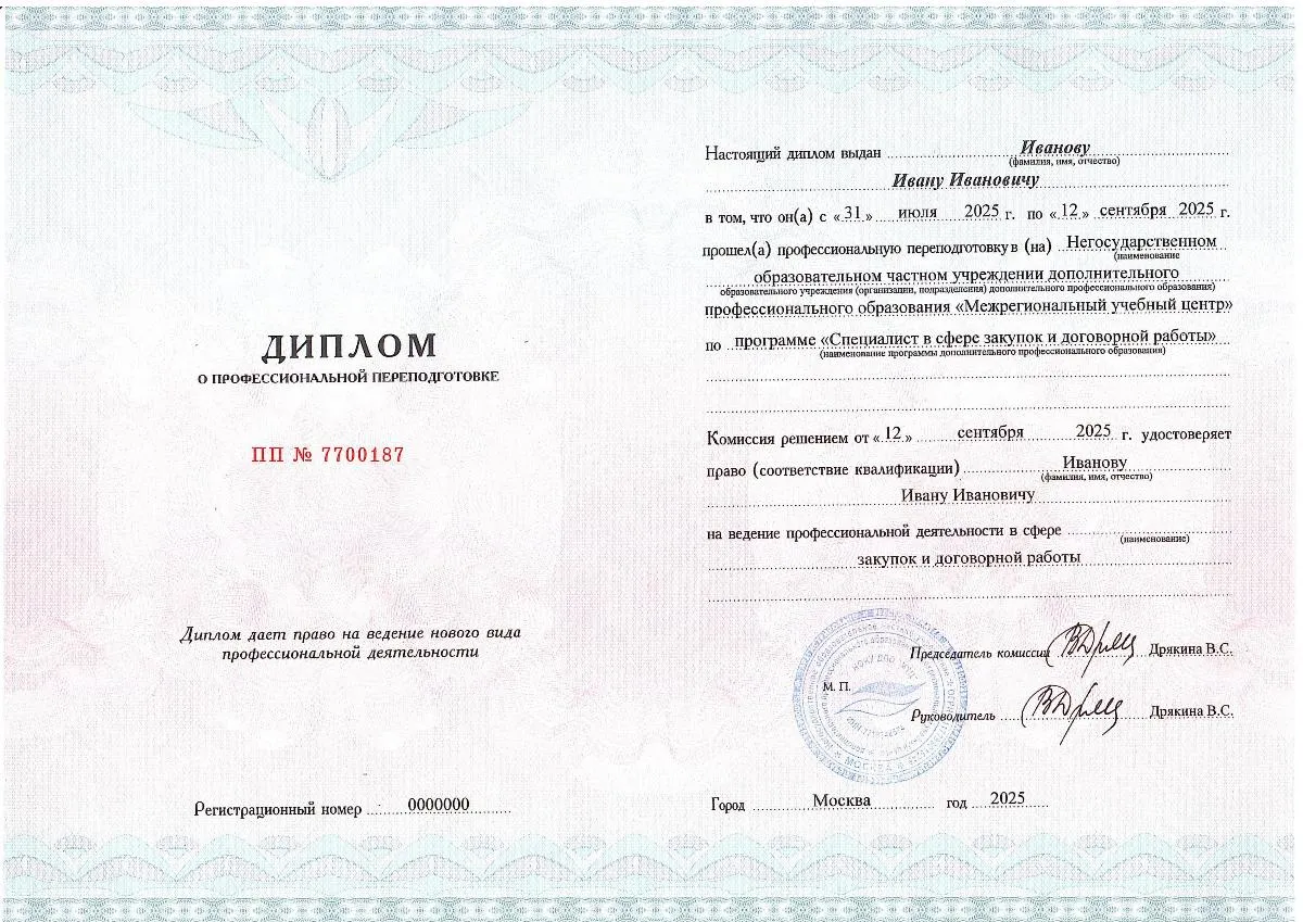 Наш учебный центр имеет опыт подготовки специалистов по самым востребованным направлениям. Обучение проходит в удобном формате, а материалы постоянно актуализируются в соответствии с изменениями законодательства. По итогам обучения в сфере закупок и договорной работы вы получаете диплом о профессиональной переподготовке, дающий право на ведение деятельности в новой квалификации.